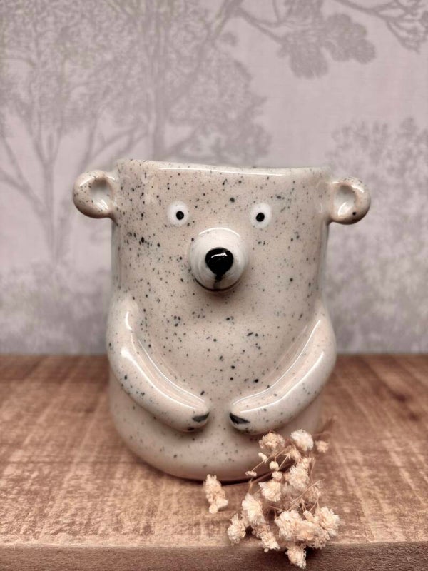 Mug petit ourson en grès beige peint a la main et recouvert d'un email transparent.