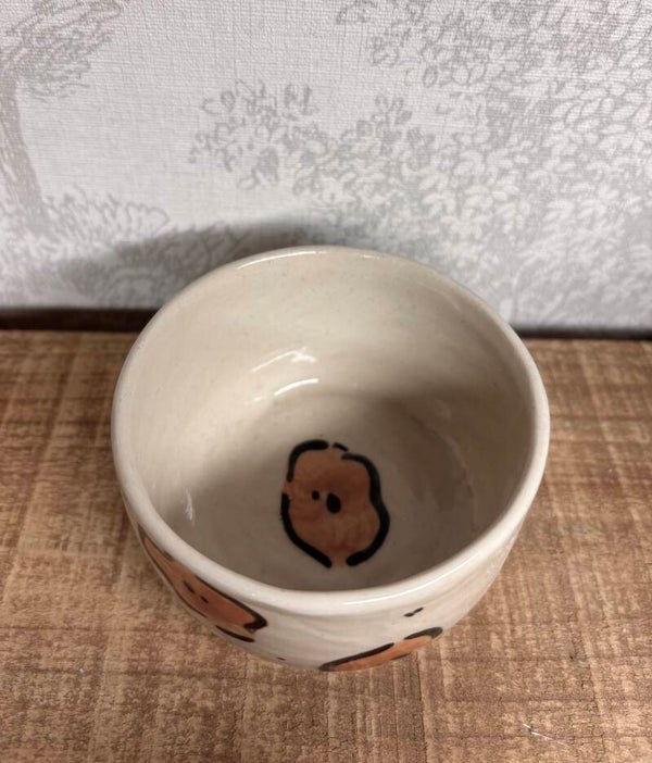 Bol en grès beige, avec taches Panthère peintes a la main et recouverte d'un email transparent.