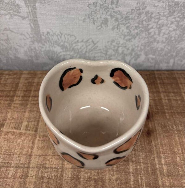 Mug en grès beige, avec taches Panthère peintes a la main et recouverte d'un email transparent.
