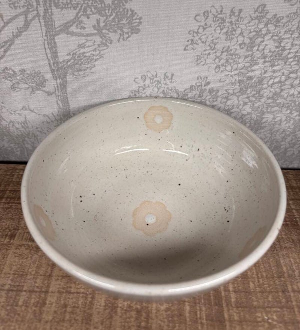 Bol en grès beige recouvert d'un email blanc pyrité avec des petites fleurs.