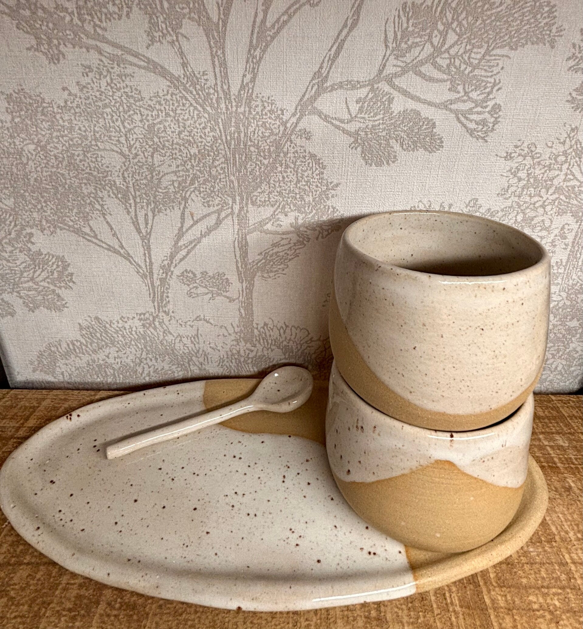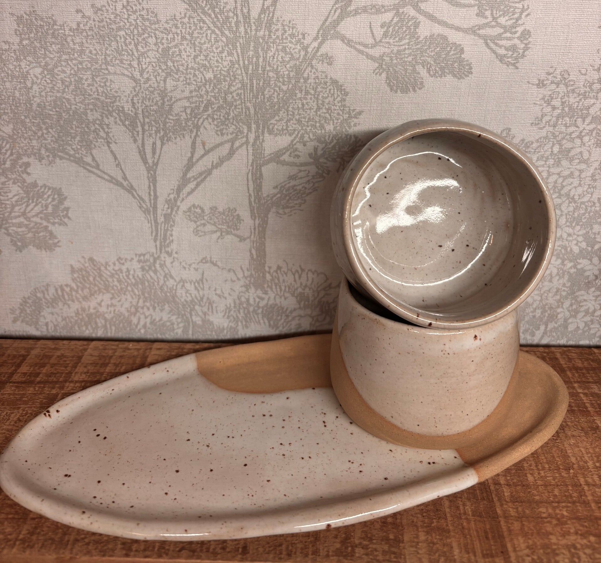 Plat ovale avec deux bols + cuillère
